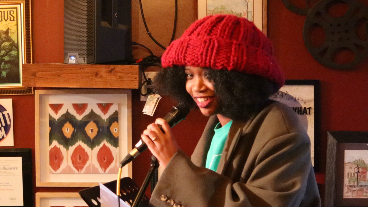 Angry Cow Poetry in the Rialto Living Room with feature, Siaara Freeman